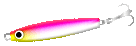 ■ルアーセレクト一覧■ ▼ポイント&攻略 湾内に広く回遊していたイナダの群れは冬になると剣崎沖や洲崎沖辺り まで南下します。そして翌年の5〜6月頃には55〜60cm位の大きさ(イナダと ワラサの中間のサイズ)まで成長し再びトリヤマの下で頻繁に姿を現します。 この時期からが絶好の狙い目シーズンとなり状況に応じてジギング又は トップウォータープラグのキャスティングで狙います。派手にトリヤマが 出ていてもそう簡単にはヒットしてこないのがこの魚の特徴と言えますが それは群れが高スピードで広く泳ぎ回っているため魚の目の前にルアーを 通せていないのが原因です。 本来ルアーへの反応は抜群に良い魚なので視野に通すことさえ出来れば 瞬時に襲い掛かって来ます。魚の移動は目に見えないためひたすらキャスト を繰り返しルアーがタイミング良く群れの泳ぐ先に到達すればその瞬間に 初めてバイトを実感できるでしょう。 トリヤマさえ出ていればそれが捕食中であることの何よりの合図と なるのでそのときがチャンスタイム!その間は精一杯投げ続けて下さい。 ワラサやイナダなどの捕食時間はベイトが豊富な状況下では殆どの場合 日に1回で大体1時間程度、この間に群れの全てが満腹になってしまいます。 またベイトの数が少なければエサの回遊の都度何回にも分けてボイルが 出ますがその間隔がまちまちとなるため少々狙い辛くなります。ベイトが 豊富なときと比べると逆にルアーへの反応は良くなります。 まあどちらに転んでもそう簡単には釣れない魚なので辛抱強くジギング を繰り返すか根気強くボイルを待つか忍耐の釣りであることには変わり ありません。 ・釣り方その1・・・ジギング 主にトリヤマの下でボイルが出ないときにメタルジグでボトム付近を 狙います。水深の範囲は大体30〜80mなので80g前後が使い易いでしょう。 キャスト後は一旦ボトムまで沈めてからハイスピードで巻き上げます。 (タダ巻きでOK) また水深が40m以上ある場所では毎回水面まで巻き上げる必要はないので ボトムより20〜30mの範囲を上下に繰り返えして下さい。その方が体力の 消耗も少なく長時間の持続も苦にならないでしょう。 リトリーブ途中にアクションを加えるならボトムより早巻きで20m程 巻き上げた時点で一瞬止めてまた直ぐに10m程巻き上げます。そこでアタリ がなければ再度ボトムまで沈めての繰り返しで良いでしょう。止めた瞬間 にヒットする例が多いのはワラサに限らずどの魚にも共通して言えること です。 ・釣り方その2・・・キャスティング トリヤマの下などで水柱が上がるような派手なボイルが頻繁に見られる ときは10cm前後のシコイワシがベイトと考えられるのでミノー・ペンシル ジグなどでナブラを直撃すれば殆どのルアーに反応する筈です。 (とは言っても1回や2回のキャストでヒットするケースは稀なので何回も 繰り返すこと) トリが廻っていてもボイルが全く見られないときには魚の層が低いと 考えられるのでジグをキャストした後ボトムまで沈めてから巻いてくる ジギングスタイルで攻めた方がヒットの確立が上がります。 また水面でパチャパチャと音を立てながら割とゆっくりとしたペースで 移動しているときはシラスなど小さ目のベイトを食べています。移動が遅い のでナブラの中にルアーを投げ入れることは簡単なのですがなかなかルアー には反応してくれないケースも多くそんなときはペンシルベイトを使って ナブラのど真ん中を狙いできるだけ小刻みに左右に首を振らせながら水面を 引くか若しくはフローティングミノーでできるだけ派手にジャークを繰り 返すと高確率でヒットさせることが出来ます。(これも根気強く繰り返す) |